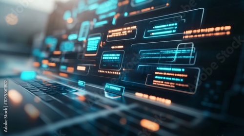 © aubriella, Obraz premium A cutting-edge AI-powered customer service chatbot interface, sleek digital workspace with interactive chatbot software and data analytics, Customer service style