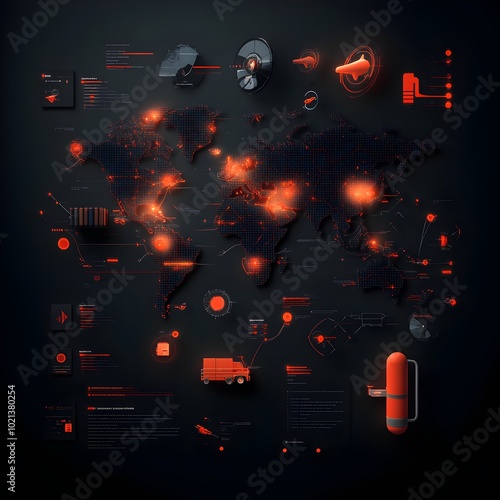 Obraz premium A cutting edge international logistics system featuring abstract world map...