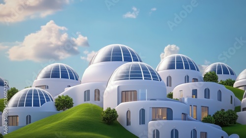 Obraz premium A cutting-edge sustainable city model built in a desert environment, featuring solar-powered smart homes