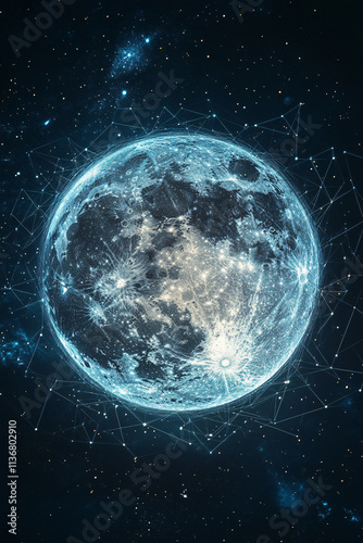 Obraz premium A cyber moon icon glowing with lunar data, symbolizing online astronomy...