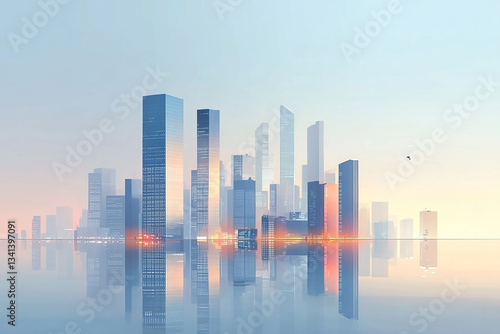 © Saktanong, Fototapeta premium A cyberpunk cityscape featuring towering skyscrapers, glowing neon lights, and a futuristic business district under a vibrant night sky.