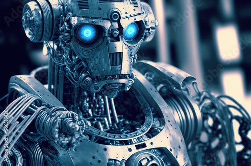 © AJay, Fototapeta premium A cyborg working on computer systems. Futuristic computing concept. Generative AI