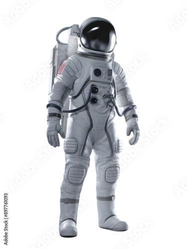 Fototapeta premium A 3D astronaut in a suit, resembling a futuristic cyborg warrior with...