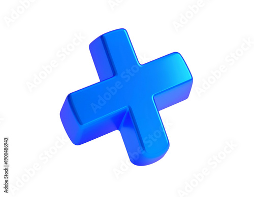 © AT, Obraz premium A 3D blue plus sign floating against a solid black background