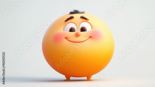 Fototapeta premium A 3D cartoon character with a round face, chubby cheeks, and a joyful laugh,...