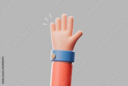 © Vibu design gallery, Obraz premium A 3D cartoon hand raised in greeting, a playful and friendly gesture.