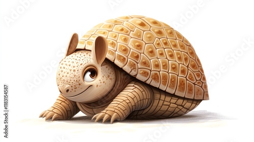 © Sakdecha, Fototapeta premium a 2D cartoon illustration of a curious armadillo rolling into a ball, desert theme, white background--ar 16:9