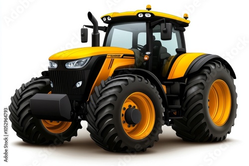© Sanchai, Obraz premium a 2D cartoon illustration of a tractor in a field ready for work white background