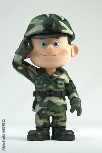 Naklejka premium A 4D cartoon soldier in camouflage saluting on a w 269 3484 soldier, military, army, camouflage, uniform, boy, gun, hat, child, people, war, clothing, armed, person, forces, helmet, rifle, cartoon, gr