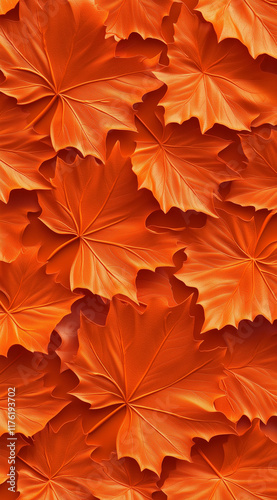 © sunaiart, Fototapeta premium A 3D clay-rendered seamless pattern of orange maple leaves with realistic colors on a warm autumn background.