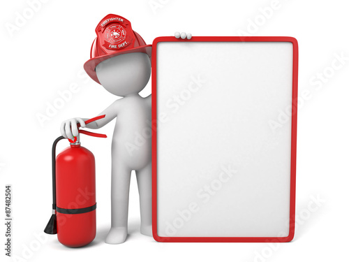 © Jane, Fototapeta premium A 3d fireman standing with a helmet. 3d image. Isolated white background