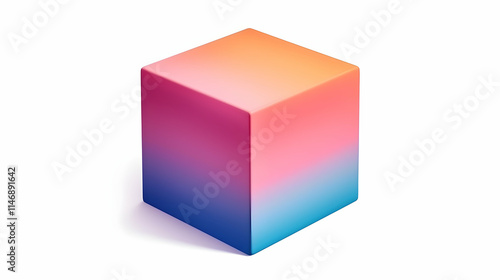 Fototapeta premium A 3D gradient cube showcasing a smooth transition of colors from pink to blue.