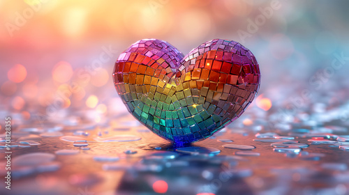 © Andrea Raffin, Fototapeta premium A 3D heart made by mirror rainbow tiles on a pink background.