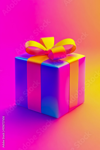 © Nikname, Obraz premium A 3D icon of a colored gift box, beautifully designed with a glossy finish.