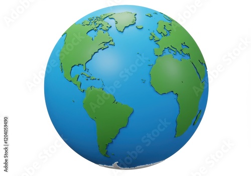 © PP Creative, Naklejka premium A 3D illustration of a globe with bright blue oceans and vibrant green continents isolated on a white background