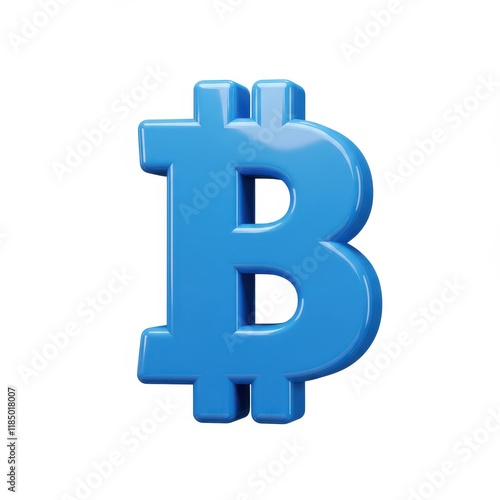© PP Creative, Obraz premium A 3D illustration of a large blue Bitcoin symbol isolated on a white background
