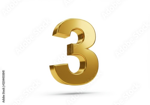 © PP Creative, Obraz premium A 3D illustration of a shiny metallic gold number three