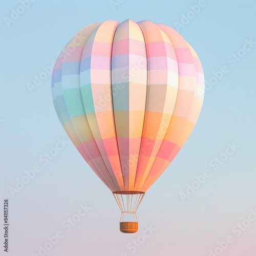 Naklejka premium A 3D minimalist hot air balloon in pastel colors, floating against a clear...