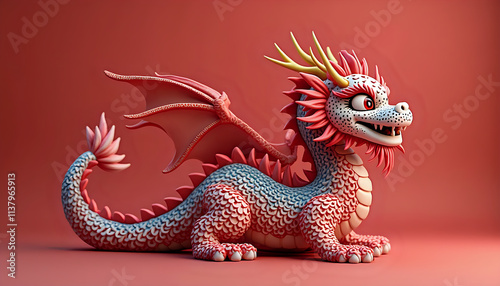 © Wool World, Obraz premium a 3d model of a red dragon on a red background