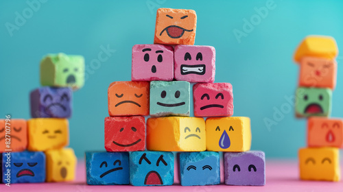 Naklejka premium A 3D pyramid visualization with emotions like satisfied and frustrated at...
