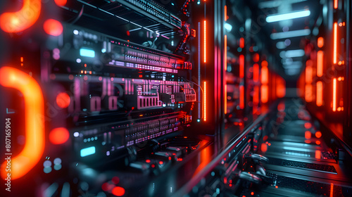 © Prasanth, Fototapeta premium A 3D render of a computer data center AI