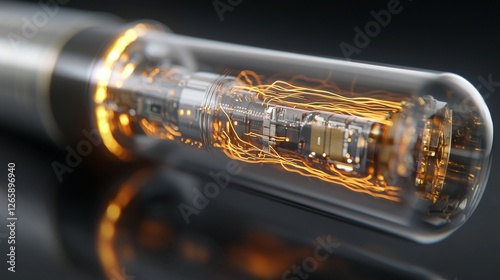 Naklejka premium A 3d render of a futuristic glowing quantum computer unit is shown