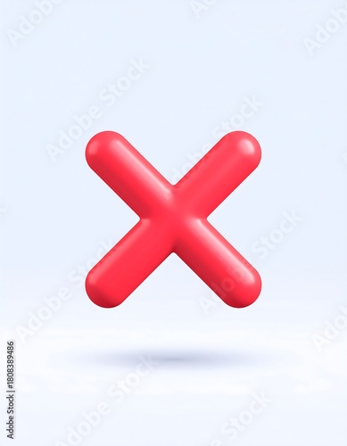 Fototapeta premium A 3D render of a glossy, red "X" mark, signifying rejection or cancellation,...