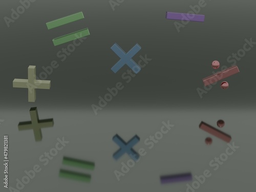 Obraz premium A 3D render of a multiply, divide, add, subtract and equal symbol with a...