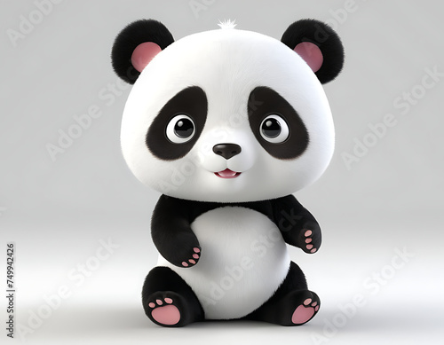 © mudasar, Fototapeta premium a 3d render of a panda against a white background