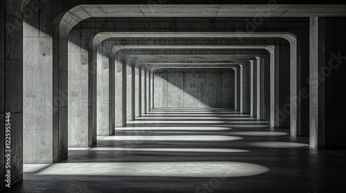 Fototapeta premium A 3D render showcasing modern white concrete architecture with a minimalistic design, featuring an empty cement floor and a bright tone, offering a spacious, clean backdrop for creative uses