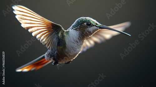 Fototapeta premium A 3D-rendered hummingbird in mid-flight, with delicate details, on a...