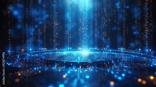Obraz premium A 3D rendered image of a stage with blue spotlights and sparkling glitter.
