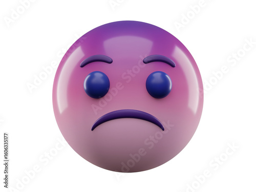 © Creative Design, Fototapeta premium A 3d rendered sad emoji face with a purple and pink gradient expression isolated on transparent background