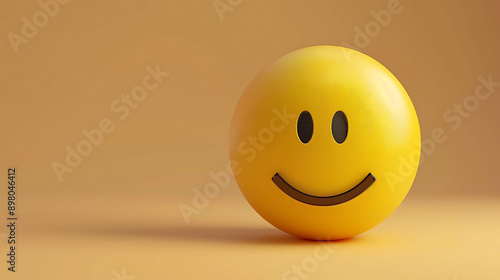 © Maule, Fototapeta premium A 3D rendered yellow smiley face on a tan background.
