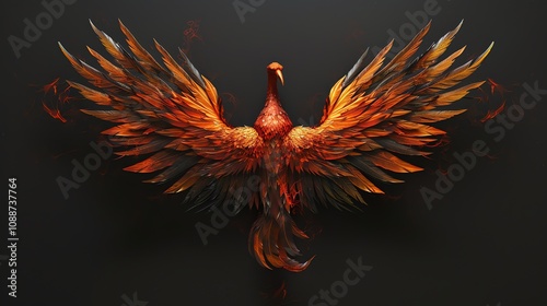 © Galib, Fototapeta premium A 3D rendering of a fiery phoenix with its wings spread.