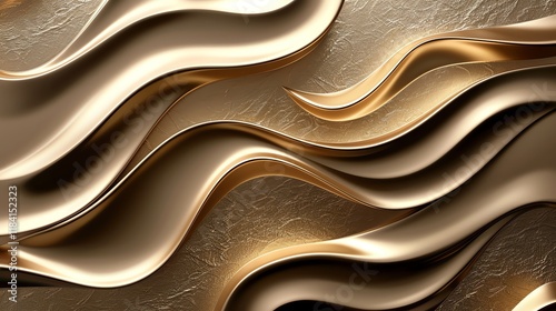 © Galib, Obraz premium A 3D rendering of a gold wave pattern.