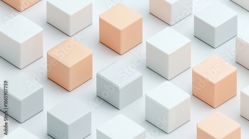 © Kropotkin, Obraz premium A 3D rendering of a grid of cubes in various colors and sizes.