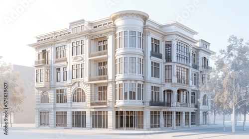 Fototapeta premium A 3D rendering of a historic landmark undergoing restoration using BIM technology, preserving architectural integrity