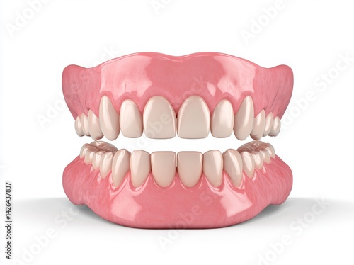 © Georgy, Fototapeta premium A 3D rendering of a jaw with a missing front tooth displaying a deuce on a white background