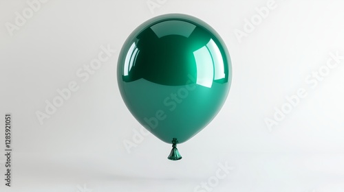 Obraz premium A 3D round balloon, glossy emerald green, floating against a bright white...