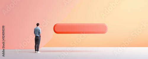 Obraz premium A 3D search bar floating through a virtual reality environment, representing...