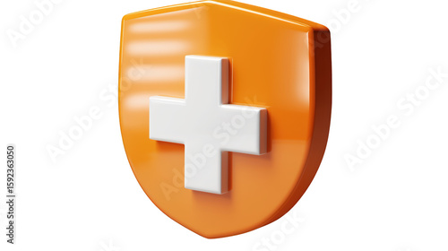 Fototapeta premium A 3d shield with medical cross. featuring shield, protection, security. This image is ideal for use in various financial contexts.