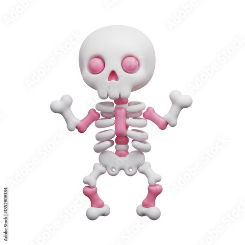 © Abubakar, Fototapeta premium A 3D skeleton with pink accents stands against a white background