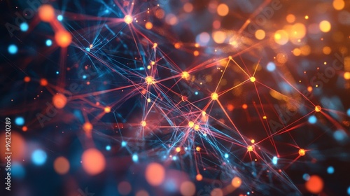 Fototapeta premium A 3D visualization of complex scientific data, with graphs, charts, and interconnected nodes,