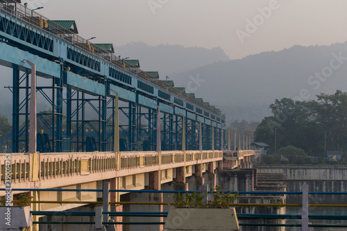 © Himalayan Gypsy, Obraz premium a dam & a bridge over the river