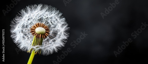 Obraz premium A dandelion in focused detail against a black backdrop Blurred dandelion...