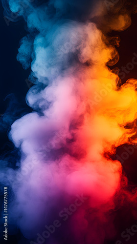 © Iana, Naklejka premium A dark abstract vertical background with white smoke illuminated by blue, magenta and orange light