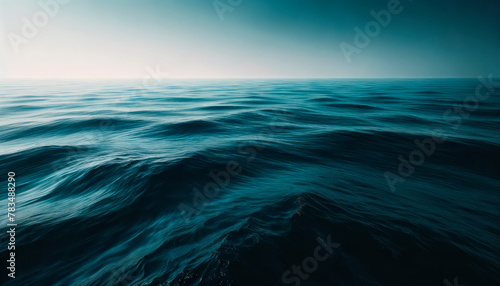 © Who is Danny, Obraz premium A dark and serene ocean landscape showing gentle waves, with a creative concept on a gradient blue background. Generative AI