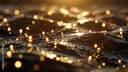 © Md.Al-amin, Obraz premium A dark, atmospheric background with golden bokeh lights scattered across it.