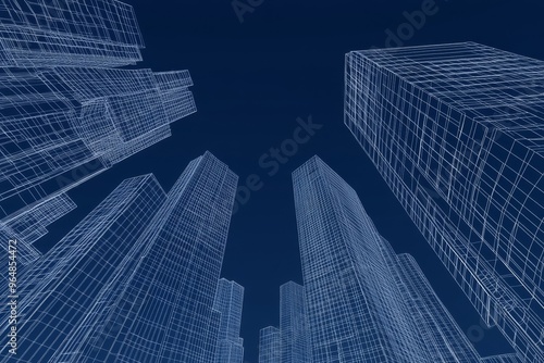 © Halina Berah, Fototapeta premium A dark background is paired with an abstract illustration of skyscrapers